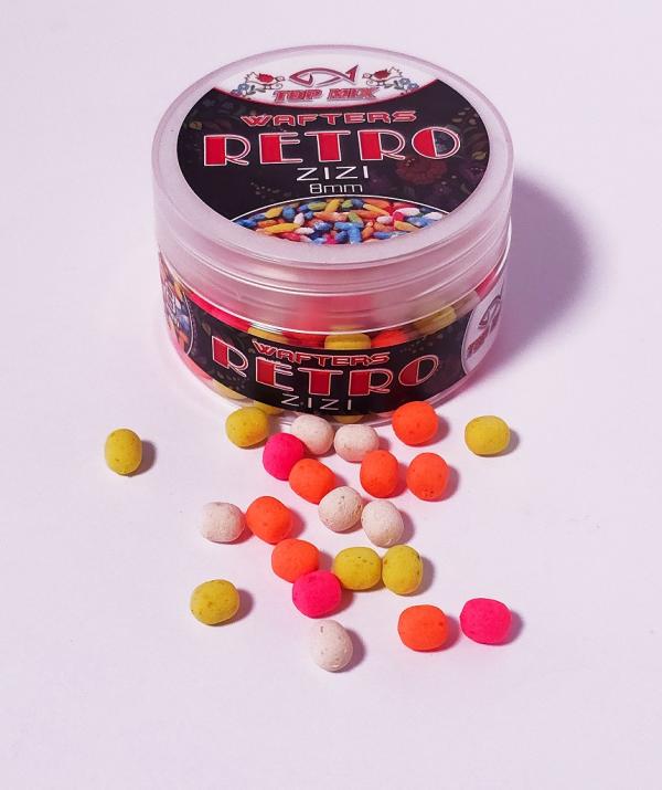 A Top Mix Retro wafters termékcsalád tagjai azoknak a feeder horgászoknak készültek, akik szeretik az attraktív oldódó csalikat. Kikönnyített pelletek, de épp csak annyira, hogy fine tüske mellett #14 horgokkal is használhatók legyenek a legkisebb, 8-as méretek. 8mm és 10mm méretekben kapható minden íz. Oldódási képessége intenzív, "nyitott csali", hogy az aroma mellett beltartalmi értéke is csalogassa az oda tévedő halakat. Retro ízviláguk visszatekintés a 2000. év előtti időszak klasszikus aromáira.